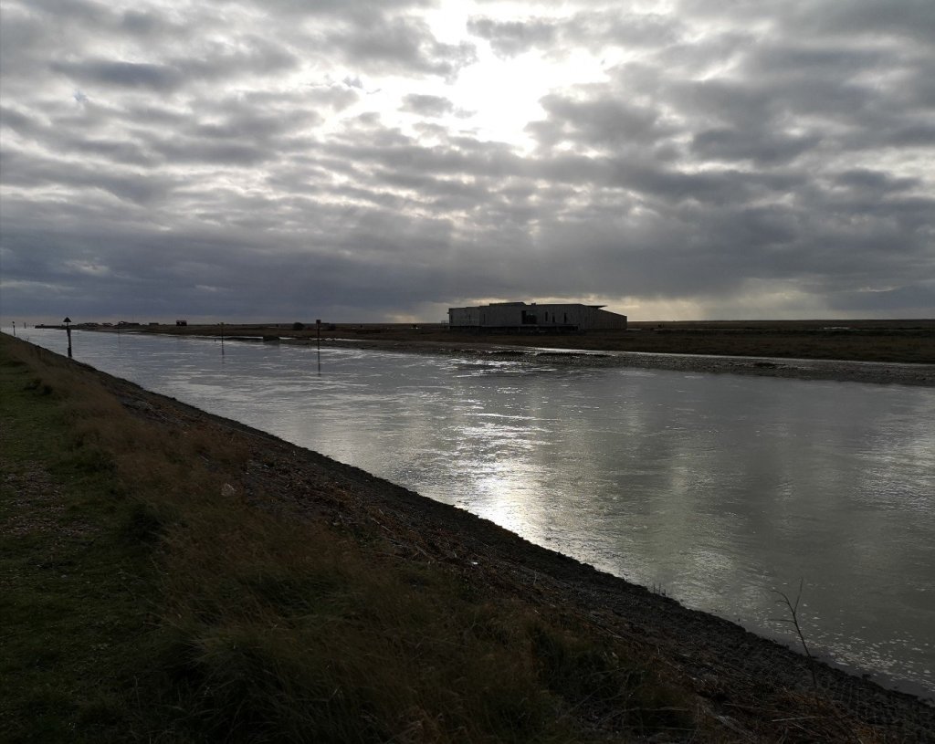 From Rye Harbour, view across the River Rother to the Discovery Centre