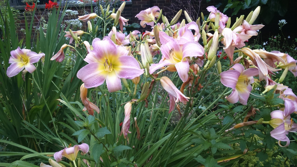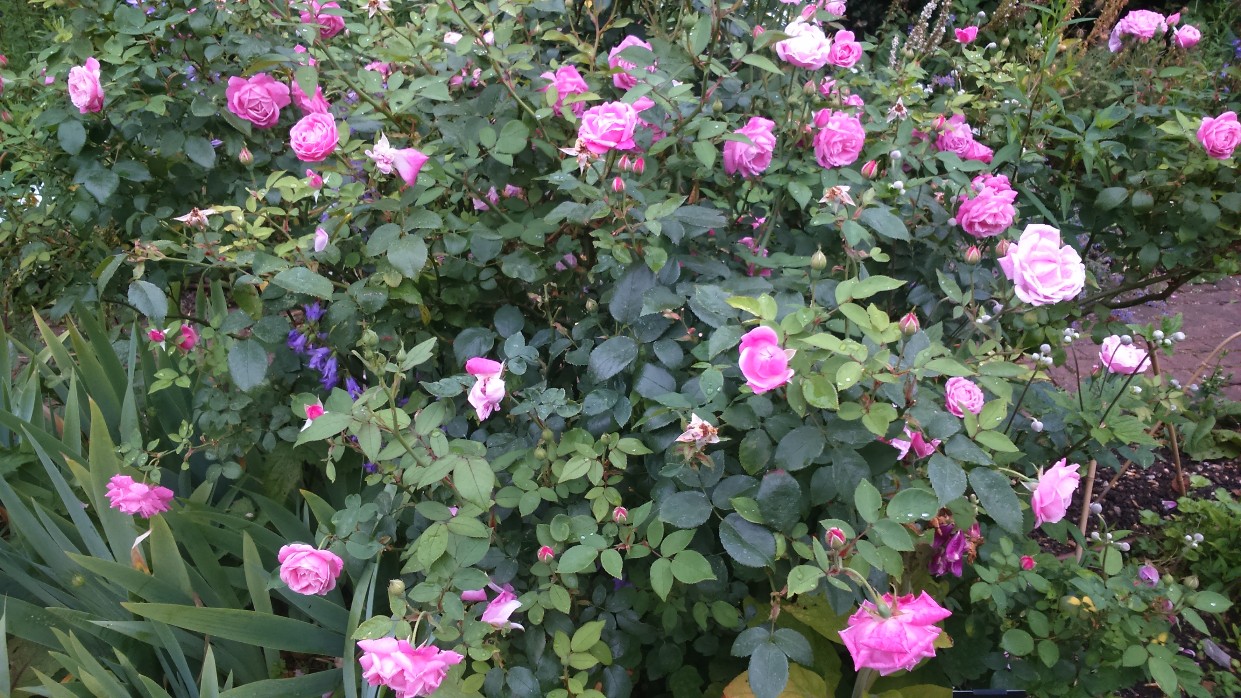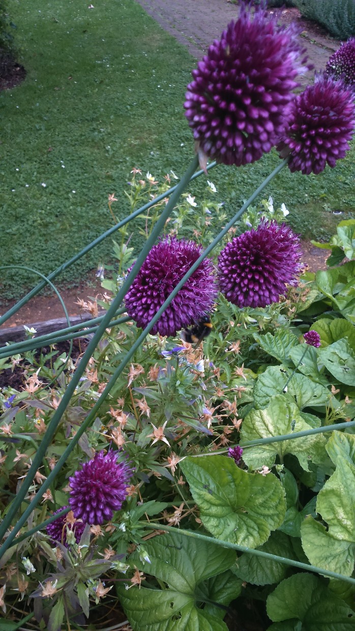 I waved at a woman sitting under blossom reading. She had on a cardi which exactly matched the house and brown-red bush to her left. It tuned out to one of my mother’s friends – a village is a small place. She was bemused, not knowing me at all.