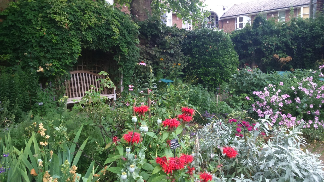 I meanered through the trees, across a pedestrian bridge and came out at a big house and paddock, then a row of cottages. The house plaque reminded me of Dick Whittington which I took as a good sign – a pilgrim if ever there was one, with his staff and pack over his shoulder.