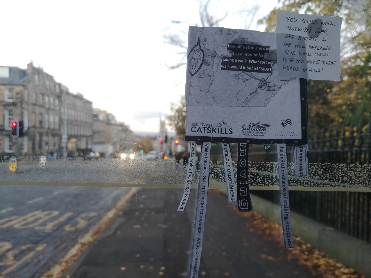 He sent me an envelope with text and image and I responded with this idea: tear-off strips for people to use when they walk, ways to see the landscape and surroundings from a new angle, perhaps. We were finding places to leave these prompts and, along the way, chatted to the interested and the not-so-enamoured about the idea! I’ll go back next week and see if any have been torn, and we will monitor our social media for #52MORE.