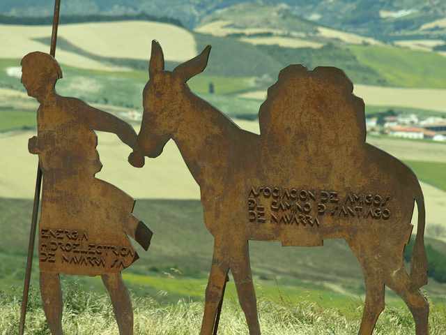It is now possible for long-distance walkers to have a company transport their luggage from one hostel to another along the Camino de Santiago de Compostella (properly kown as the Camino Francais or French Camino) by car or van, allowing many to make that trek who had previously not been able to. Then there are a few pilgrims who take a mule to carry their bags, but the majority carry their own. I started my long-distance walking habit in Spain with a rucksack on my back (containing what I needed for a 3-month stay: summer, autumn and winter), rather than having a donkey carry it for me, hence my blog is entitled, ‘Walking Without a Donkey’.