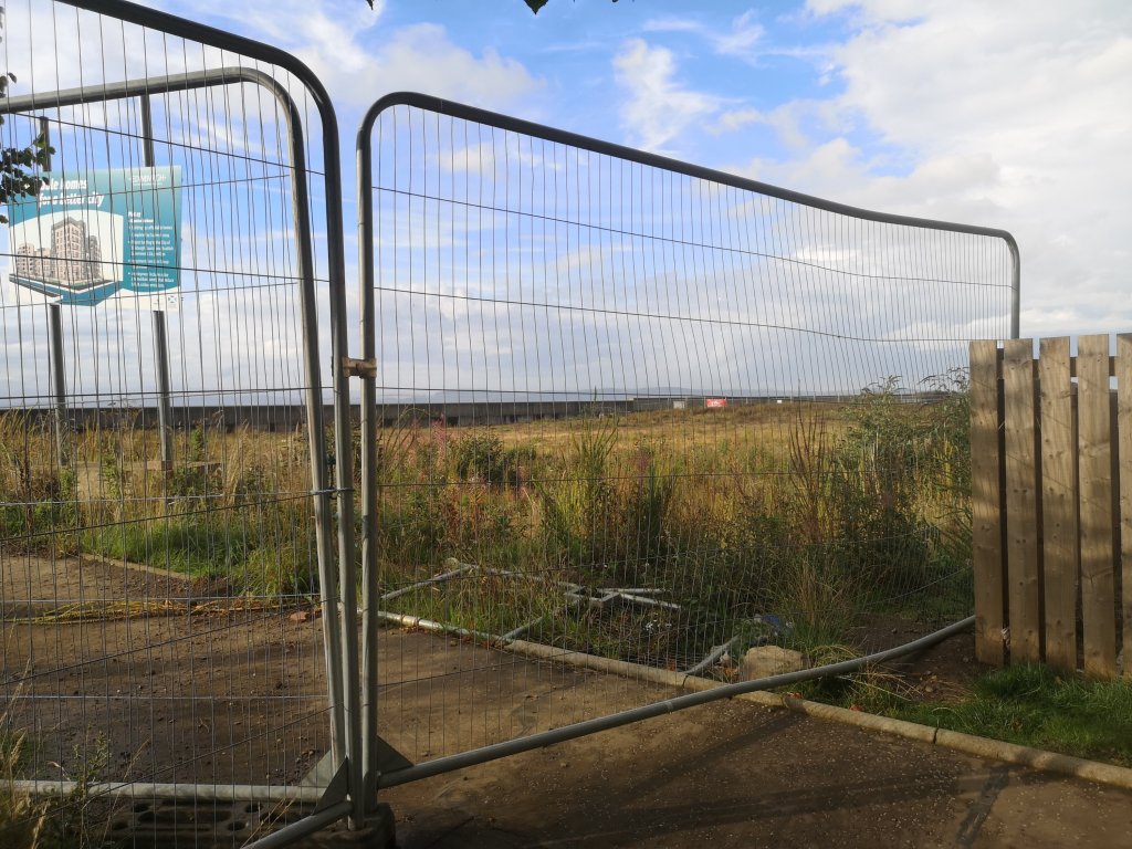 Nat pointed out the copse of silver birch which have been cordoned off for keeping, the result of our extensive lobbying of the developers. Here, an art repository is planned by the National Galleries of Scotland, way down the line. It was also the site of our community orchard (at the Tor), once upon a time.