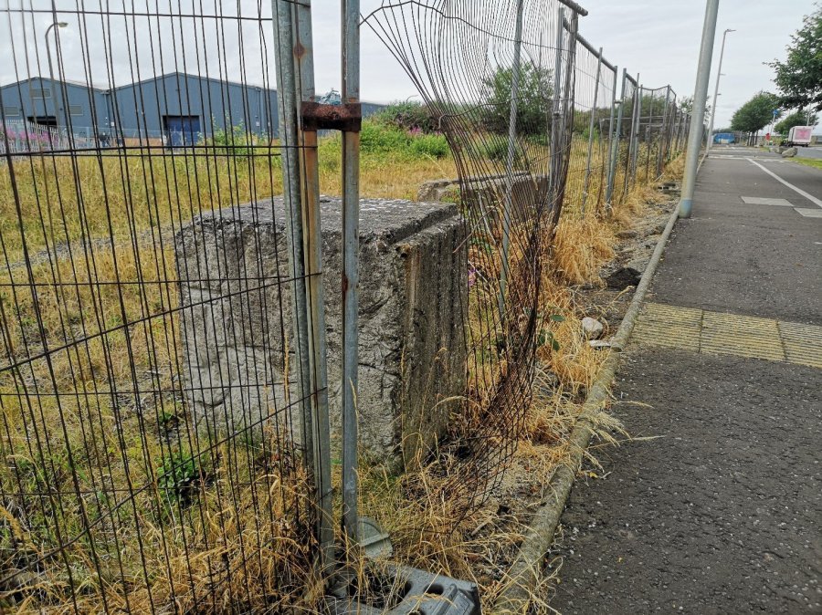 There is a new fence to your left, meeting the wall at right angles, part of which has been pushed down. You can go over that into the section of scrub land and walk towards the wall. There you will see the QR code to scan with your mobile phone and can then listen to the walk (headphones will probably be best).