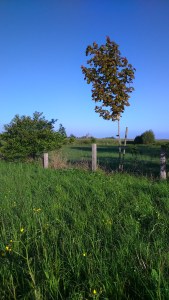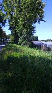My feet were throbbing, my ankles had felt quite unpleasant for a stretch. Now I listened lazily to the ducks, the farm machinery moaning, and felt the grass dampen me. Seed pods sailed down and piqued my thigh. I was not exactly pushing myself. There was no need to be in Pontorson before 5pm when the youth hostel opened.
