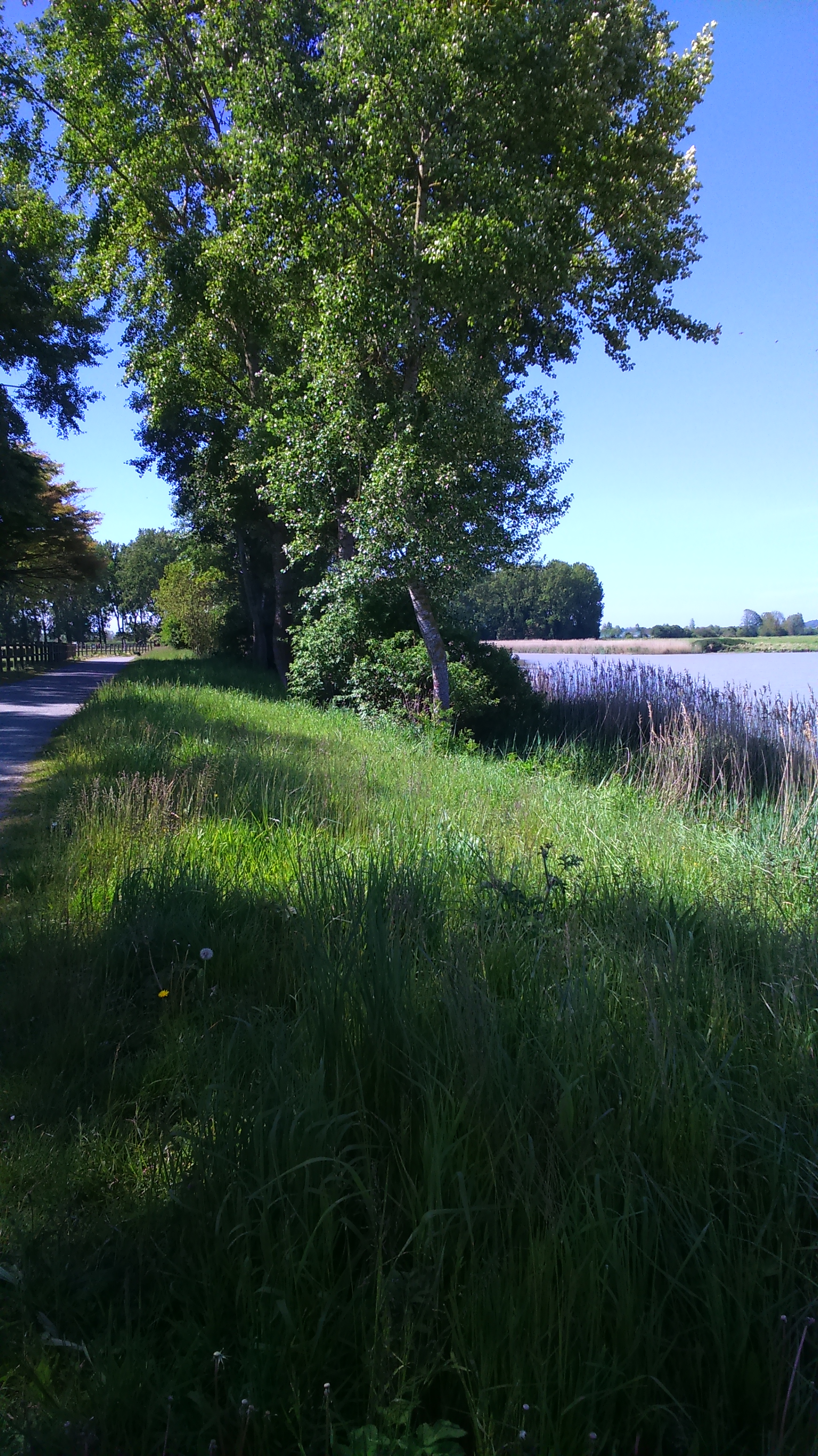 I left Bas-Courtils at 8am on a gloriously sunny morn. Beside the sea, the land stretches level affording a distant, nearly unbroken view.