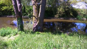 I arrived at the M S-M service buildings: restaurants, shops (though I followed the signs and found none), toilets (equally hard to locate), and so on. And then having completed the ‘Chemin de la Baie’ I launched straight, alongside the River Cuesnon, a new ‘randonnée’ in the direction of Pontorson.