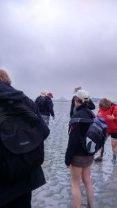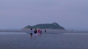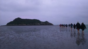Trekking across the sands like that takes two and a half hours. Be prepared for cold feet, lots of mud, and finding yourself in seawater to mid calf or knees (depending on the weight of what you are carrying!)
