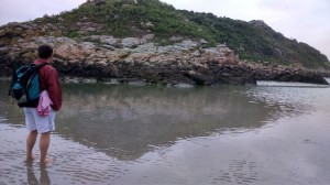 I watched the others who were massing: men, women and children; old and young; some who had clearly been many times before. I was the only one with a ‘serious’ rucksack (by which I mean I had clothes, sleeping bag, cooking utensils etc on my back – stuff for a month’s travelling), and I too removed my footwear, dangling them from a strap so that I had both hands to steady myself as we negotiated the sinking sands.