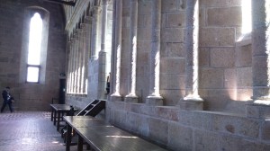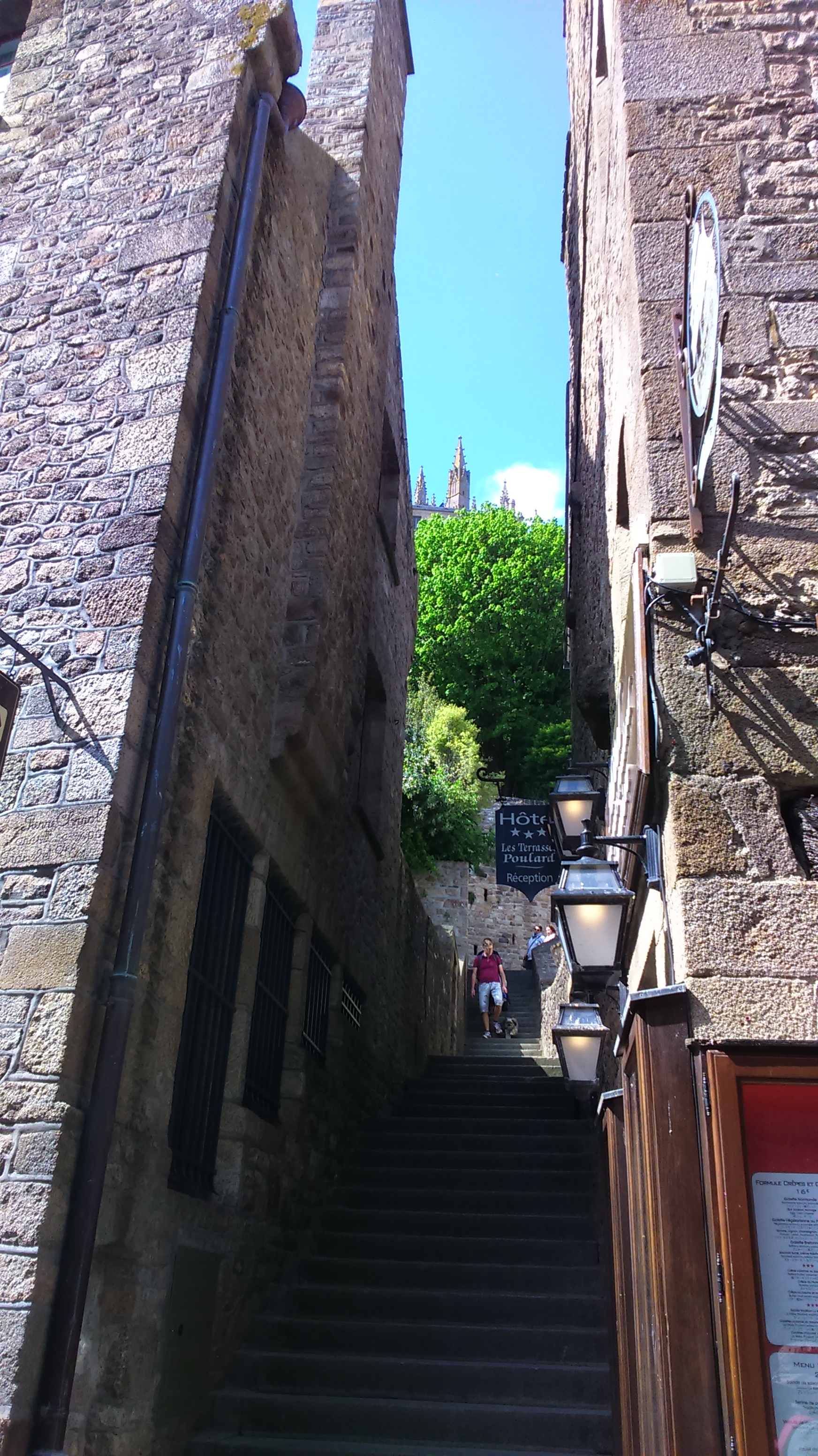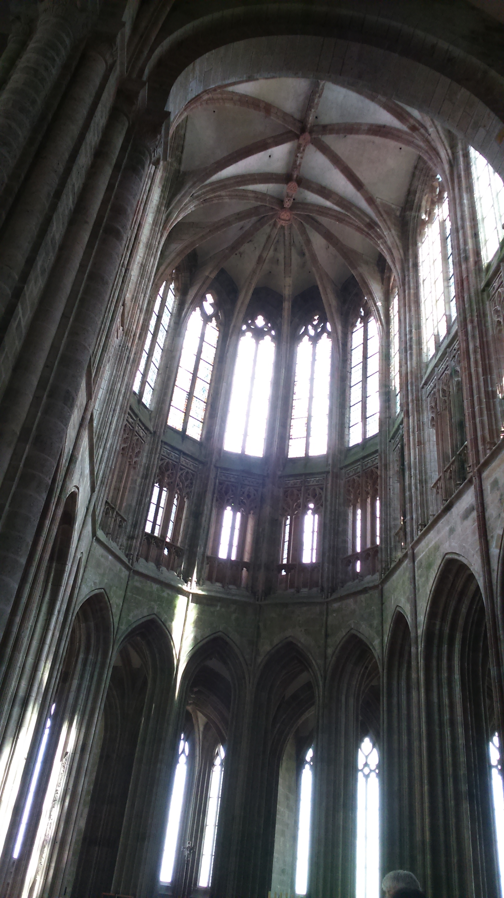 And I was fully engaged by the tale of the 1000 years of construction, stimulated apparently by Saint Michael (the archangel) speaking not once, but twice to Aubert, Bishop of nearby Avranches, before he took heed and started to build. The building of the Gothic-style choir (chancel) was impressive.
