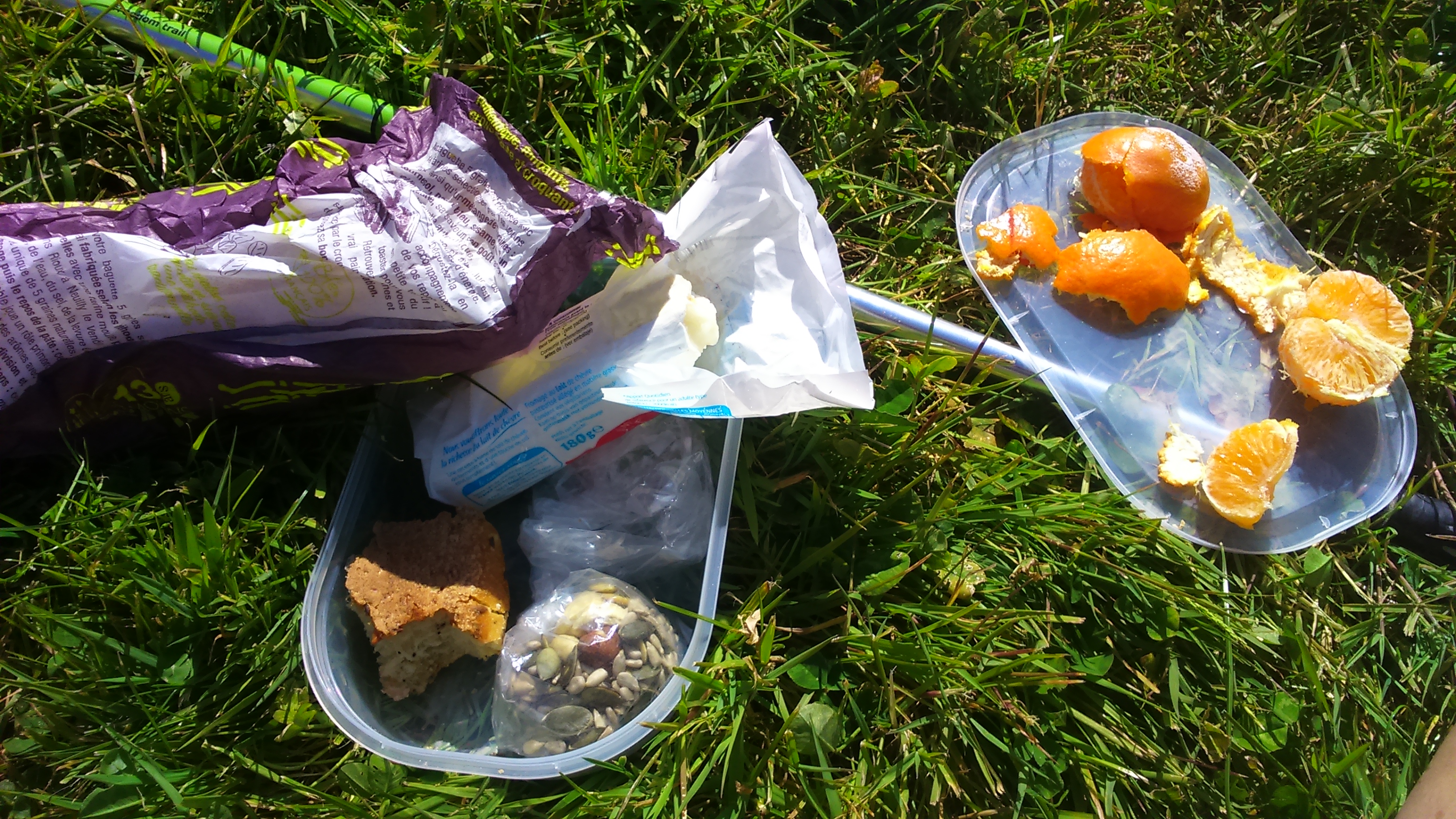 After almost three hours without a break, I was casting ahead for a tree throwing shade, but there was not one until 9.20. After a fifteen minute break, and having eaten my orange because full much needed fluids and was the heaviest (delicious it was), I deduced that we were barmy, the lot of us, walking so far in this heat!
