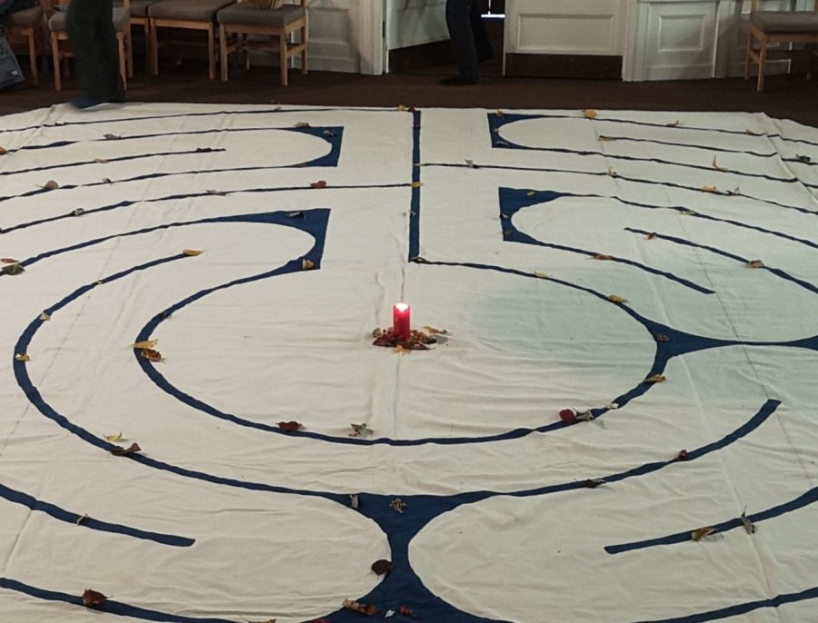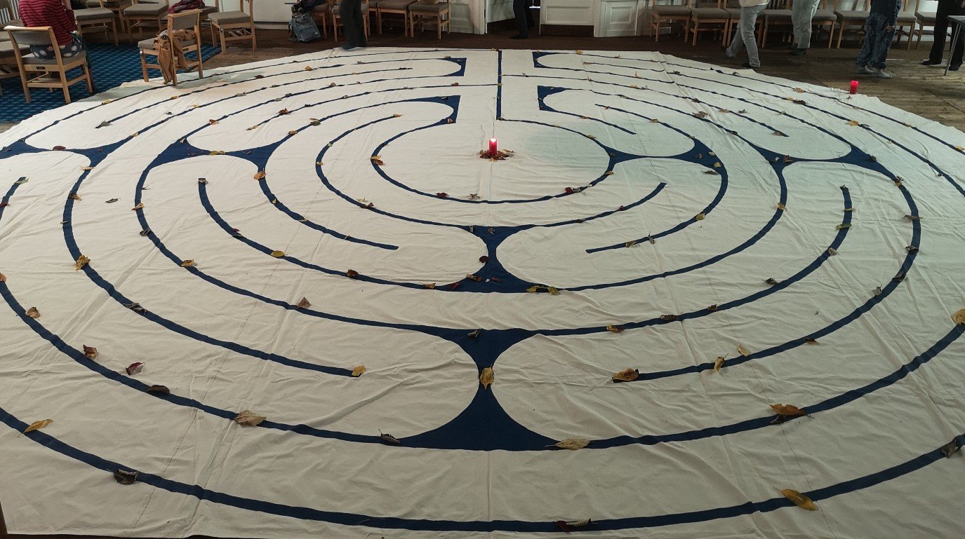 The full programme of events continued with a labyrinth. Set up by Ali Newell with red candles and autumn leaves, we were first given a short introduction to their origin and useage over the centuries. Then we were invited to take something from her basket and enter, one by one.