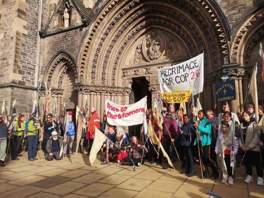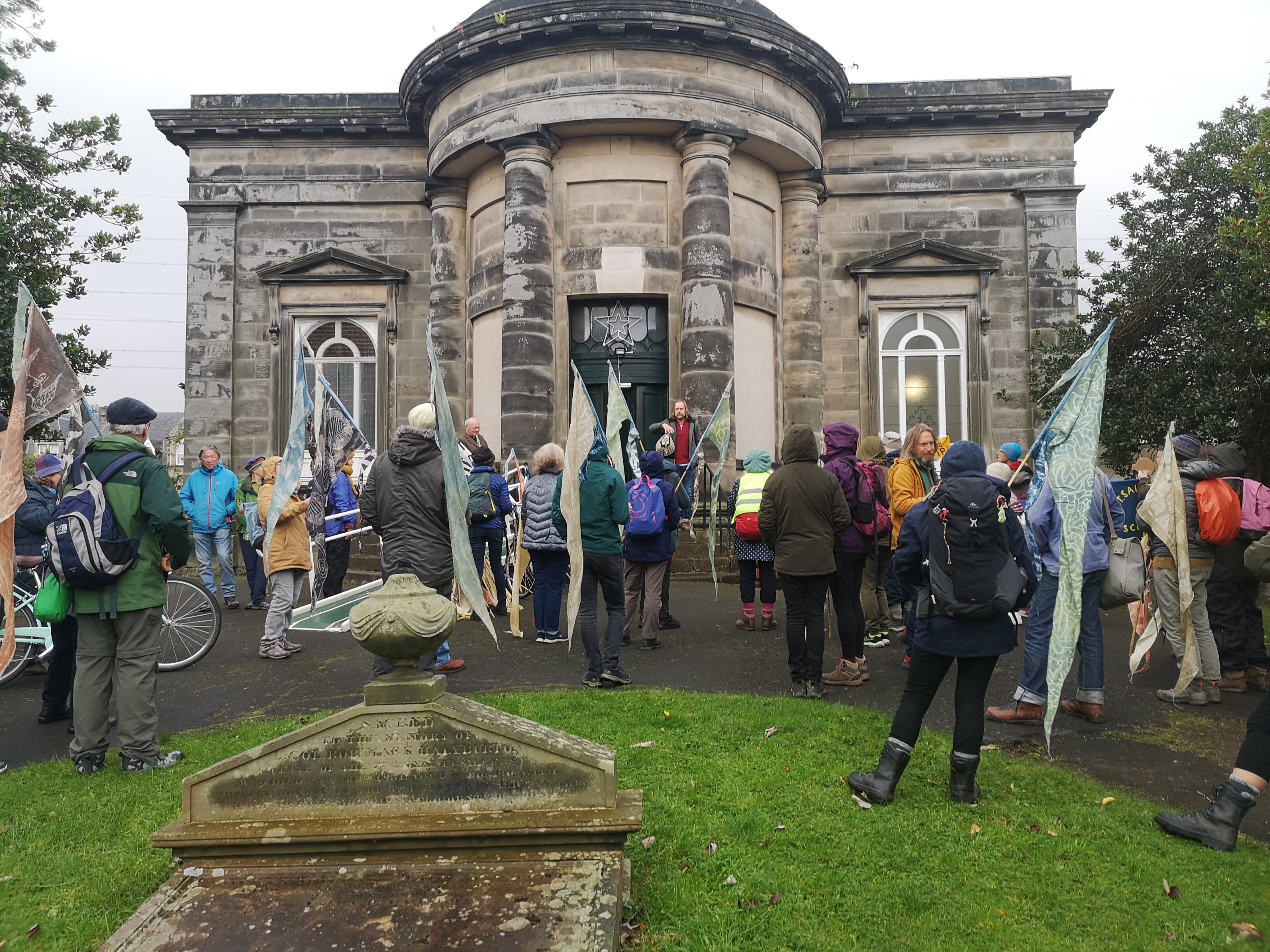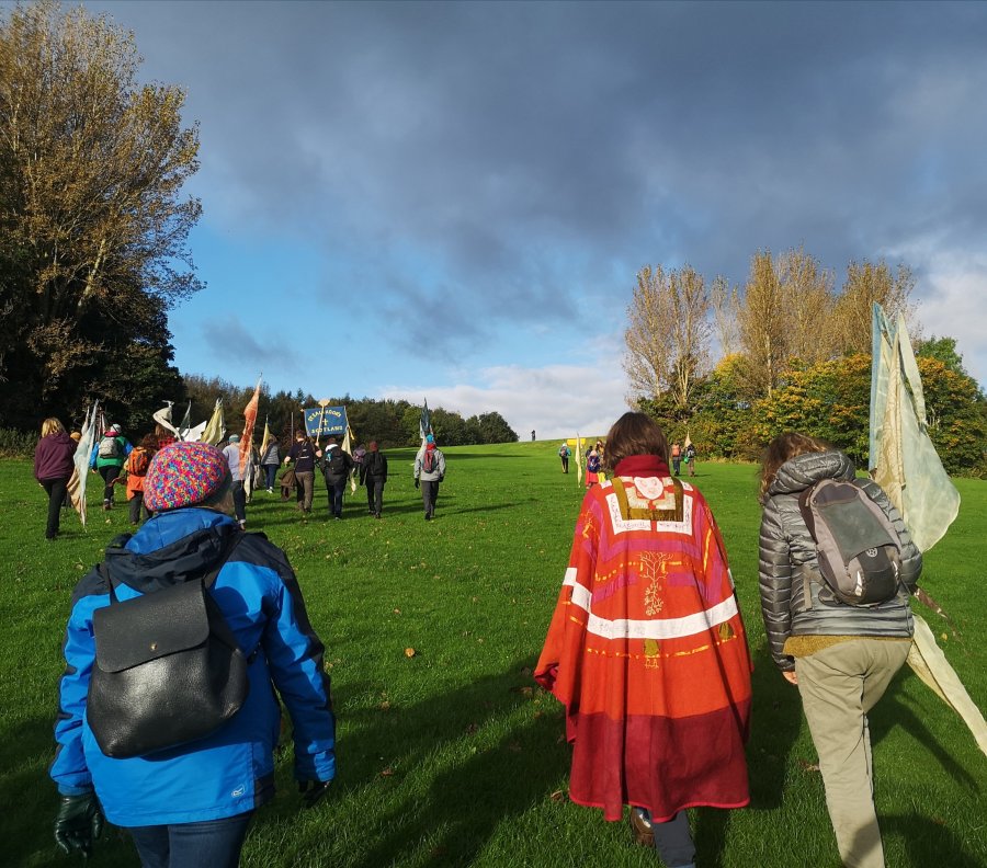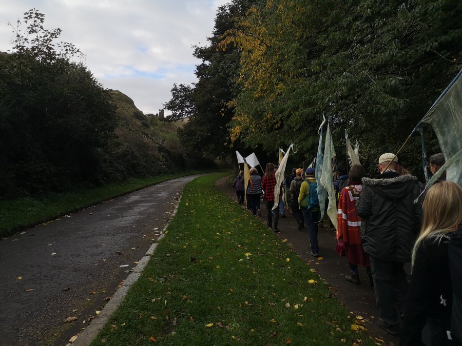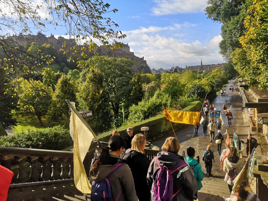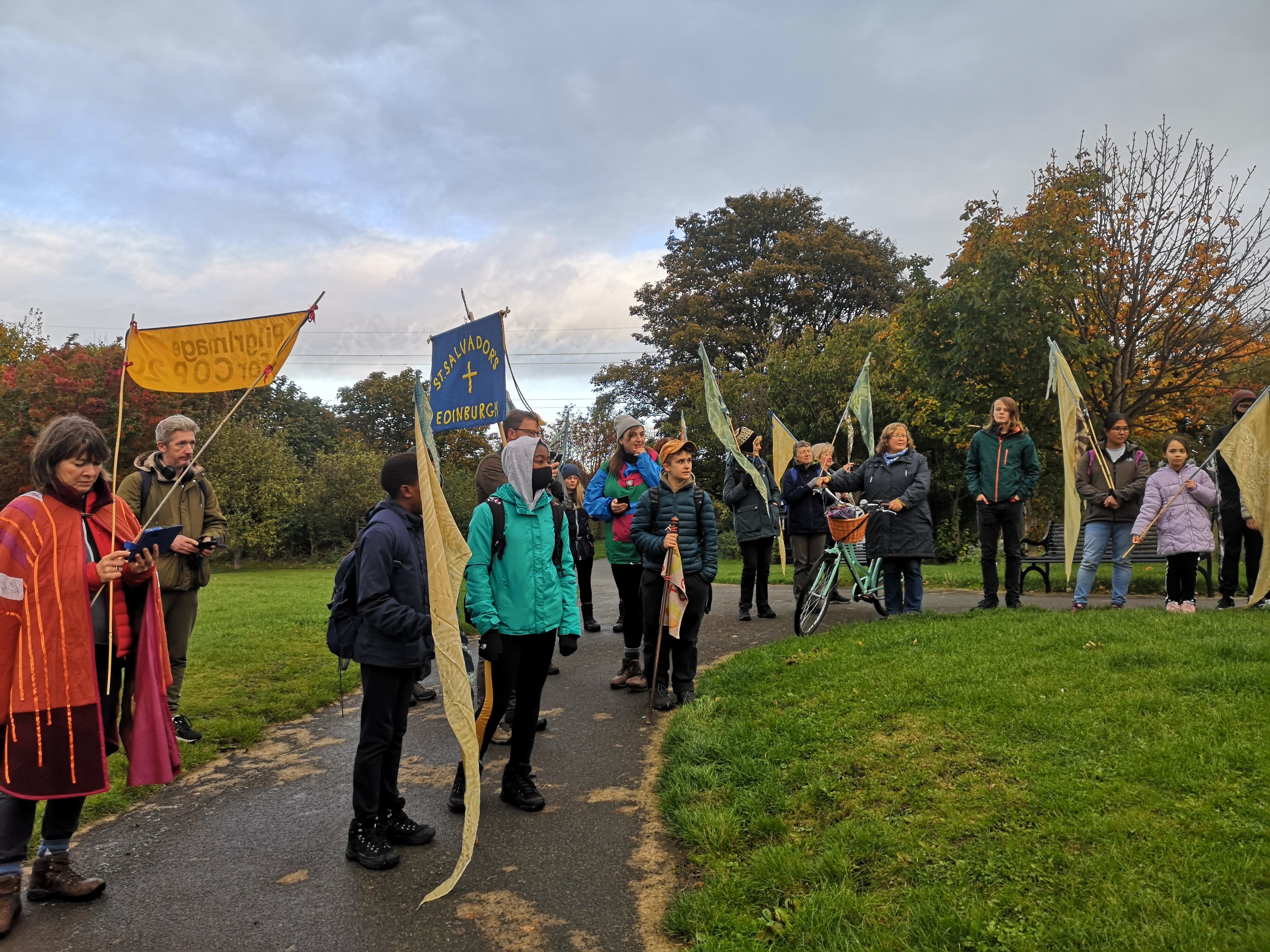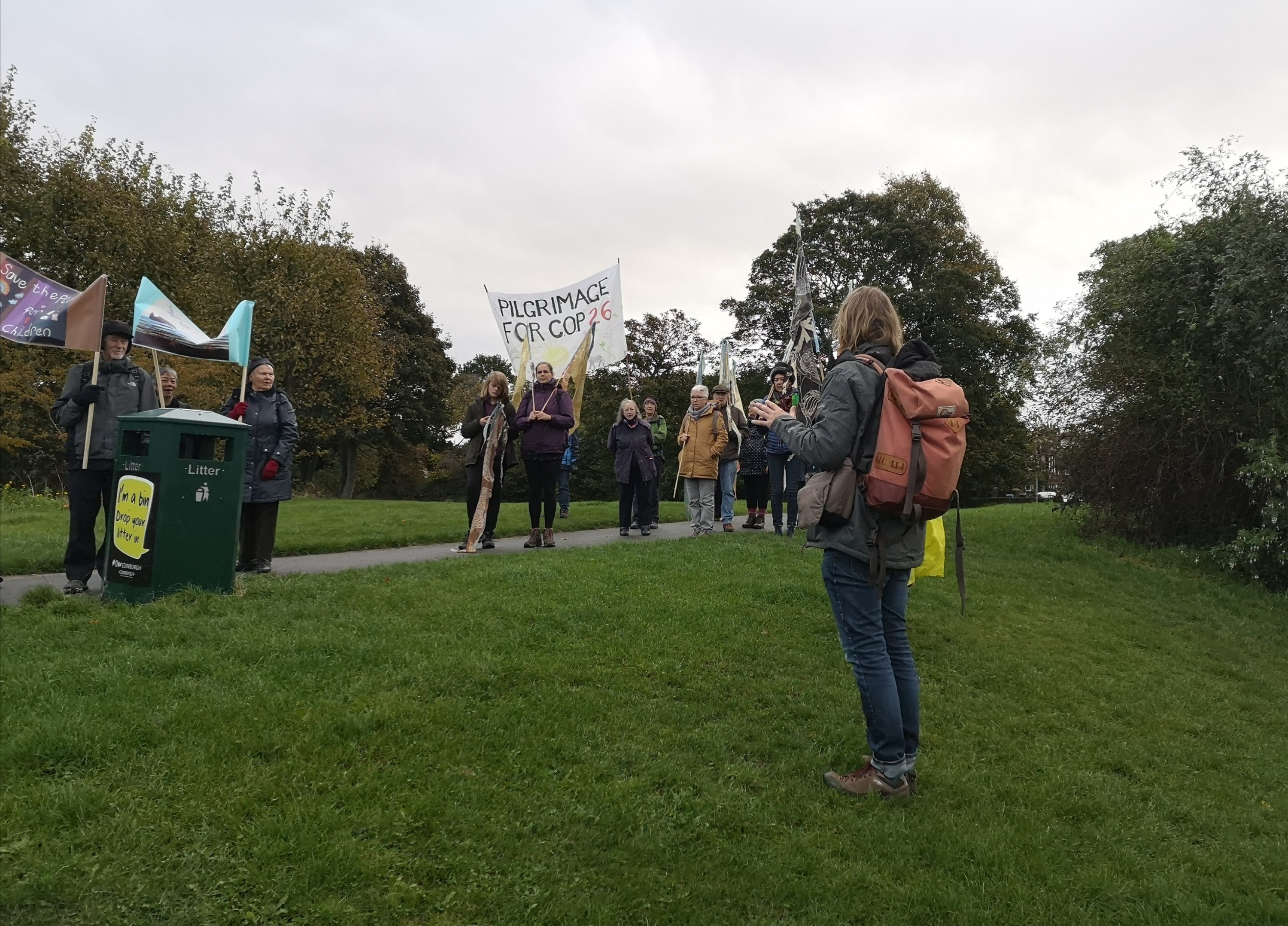 We were nearly half way through the Pilgrimage for COP26 from Dunbar on the east coast of Scotland to Glasgow, where the COP26 Climate Change Conference is now taking place. It was organised by A+E and many volunteers.