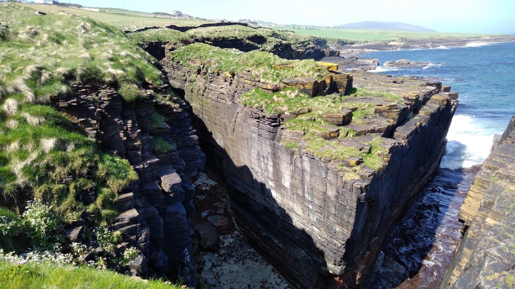 You can listen to a recording here of the word ‘knappin’ being used in a sentence in dialect. If you’re interested, like me, in the origins and examples of ‘knap’, here is another page about it. It’s interesting that to to knap can also mean to walk in a particular way: ‘To strike (the heels) on the ground in walking (Ork. 1960); intr. to walk with short active steps, to patter, to move about smartly’, which was something I did as I passed those road works while I trying to hear the voice on the phone, but not something I could do in the field where I was talking with Ann Marie.