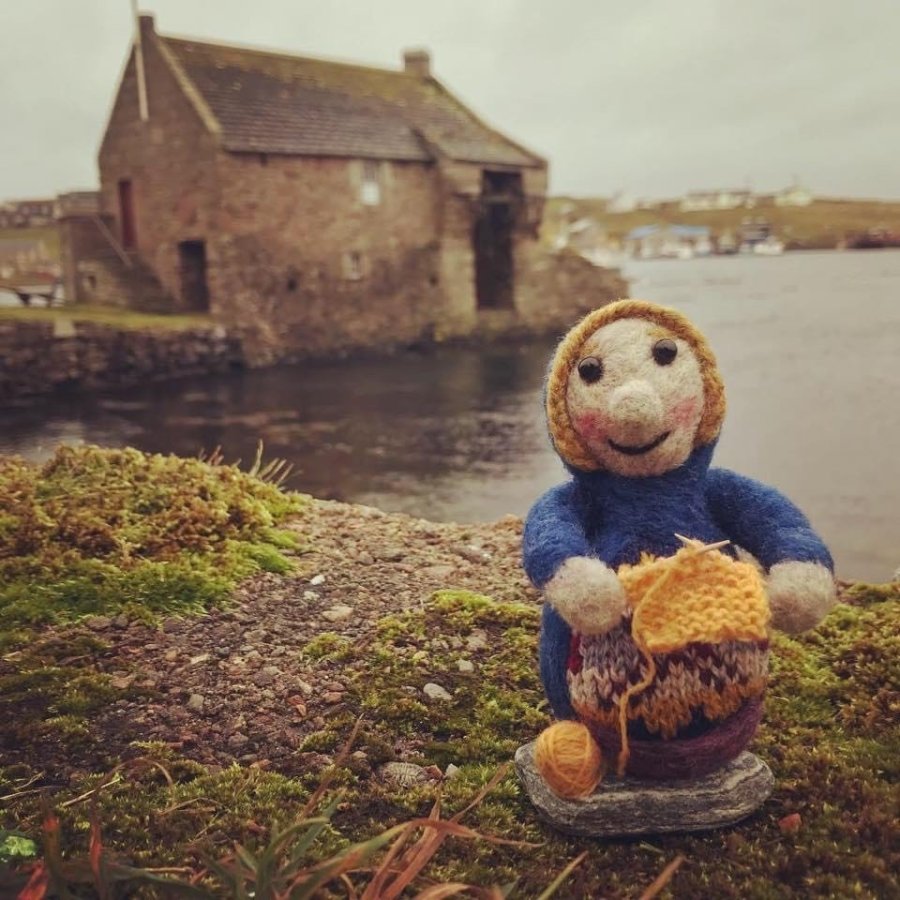 Ann Marie explained that she writes peerie bairns’ (little children’s) books in Shetland dialect, also working with them in school because, ‘Through my work I can see that the Shetland dialect is a dying one. A study has shown that in the next 25 to 30 years it’ll be gone. People are changing their tongue so that they are understood better and I do think that the TV has had a huge impact on that. There are still areas where it is strong, and I like to think that I’m doing my peerie bit to keep it alive so that hopefully it’ll be there in the future.’ Before the lockdown she was working alongside Shetland Arts delivering ‘Arts in Care’ workshops with elderly people in care homes. She told me, ‘It’s interesting, seeing how the children and the elderly respond differently. ‘