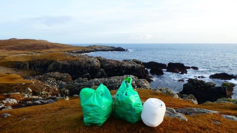 Ann Marie told me about where she has lived for 18 years: how you must cross the estuary from the mainland to get there, managing the ferry terminal and traffic; how the island has around 1000 inhabitants; and that she stays in Symbister, the main conurbation, her home. ‘Whalsay is on the east coast’, she told me, ‘there’s nothing really in the middle of the island and I usually go around in a car. Recently, though, I’ve been walking around the coast, seeing it from a different angle. It’s really interesting.’ She decided to join the challenge of gathering bruck (rubbish) which has been dumped or floated in from abroad, particpating in a Shetland-wide project to pick up litter called Da Voar Redd Up. ‘There’s not a coastal path as such’, she said, ‘but little blue pointers say Access Shetland. I diverted into geos (long, narrow, steep-sided rock clefts formed by erosion in coastal cliffs) and onto beaches where I could.’ So far she is 3/4 of the way round and has picked up 80 bags. Some of the pieces she has lifted have come from as far away as Massachusetts!