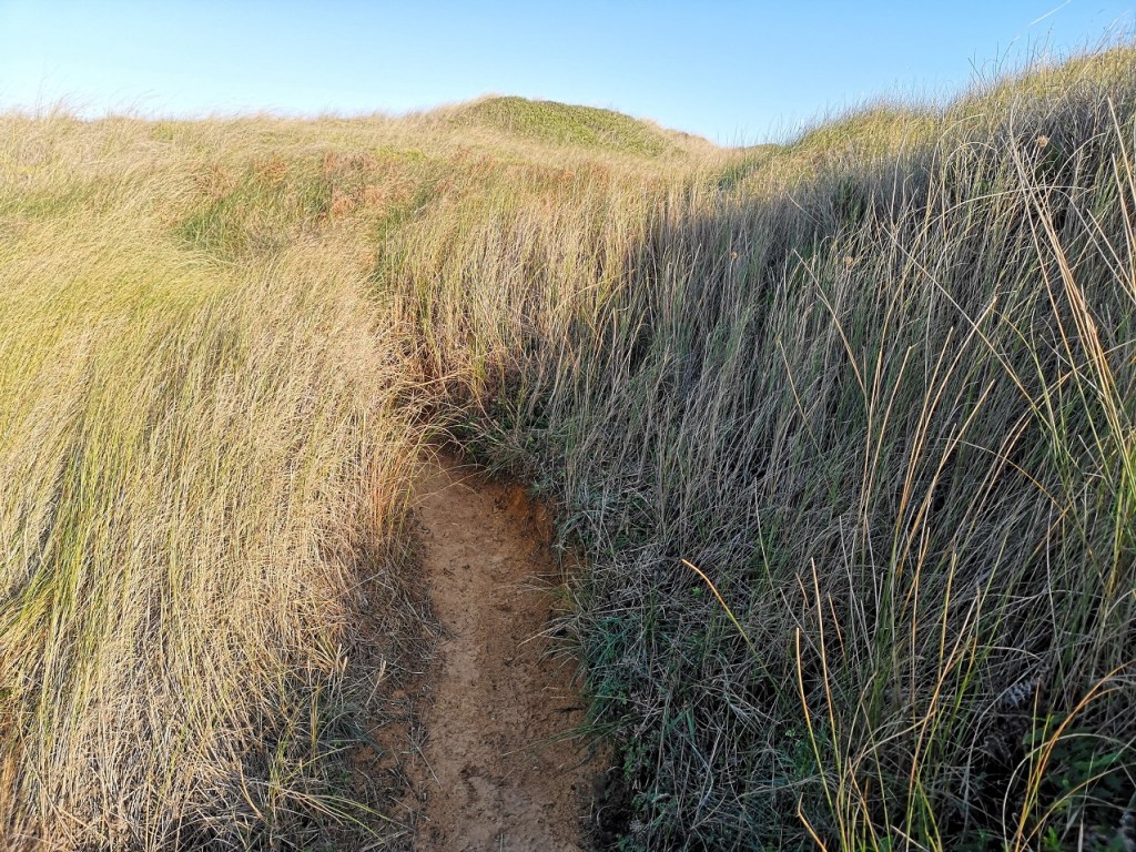 When Ann Marie Anderson phoned me from Whalsay, a jamon-shaped island in the east of Shetland, I wasn’t far from the river. Taking a right over the bridge, I passed 3 cyclists who were standing sort-of-200m apart on a path which was 1.5 metres wide, with cars parked beside them, on a very busy road. I crossed to the dangerous, non-pavement side. When I got to the Lees and climbed over a metal gate (no mean feat when you’re on the phone!) I found myself in an unfamiliar field, full to heart-height with sweeping grasses, gleaming yellow buttercups and dandelion clocks, many of which had discharged their fluff into downy piles on the hard-baked, cracked clay. I was totally alone and walked around the perimeter where someone/thing had crushed the undergrowth before me. I took occassional wee detours out and back through the bushes to where I knew the edge of the land met the river bank and found little patches of sand where the fishermen sat in days gone by. Back in the field, I deposited my anorak – an incongrous scarlet island amongst the gentle, complementary hues of nature – and traced figures of eight, winding pathways of my own in one corner as we conversed.