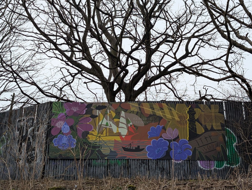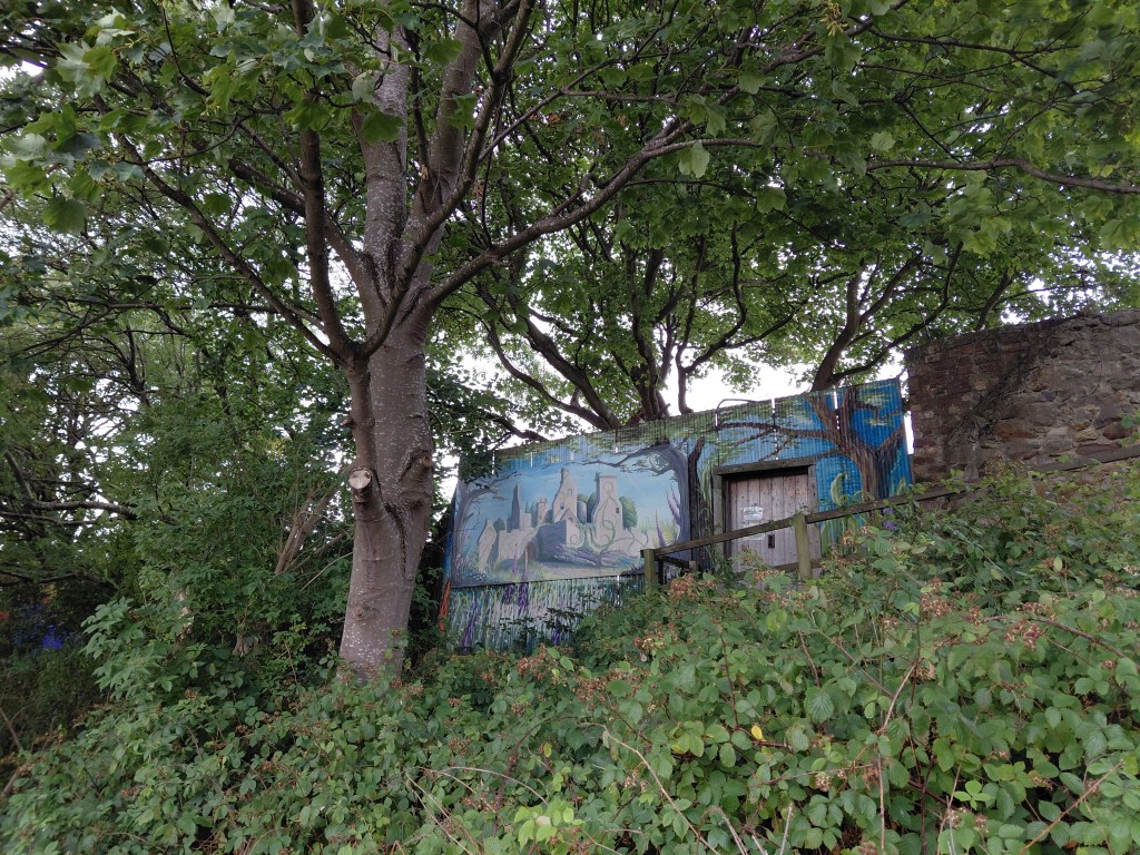 Mural on the wall of Granton Castle Walled Garden by Eve Murray, commissioned by Granton Hub and funded by Sustrans Artroots to speak to the history and culture of Granton.