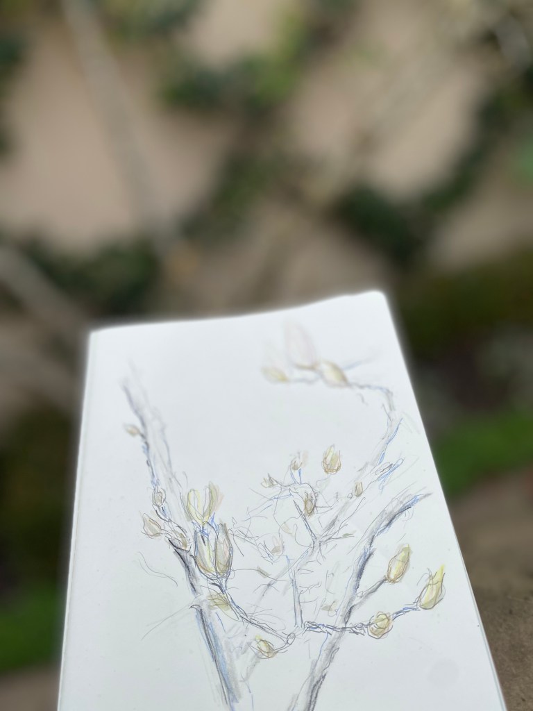 Your project offered me a simple way to spend time with my mother’s beautiful tree… I am grateful for the drawings I made, simple gestures/ memento artefacts, a gentle marking of a significant time/place/memory