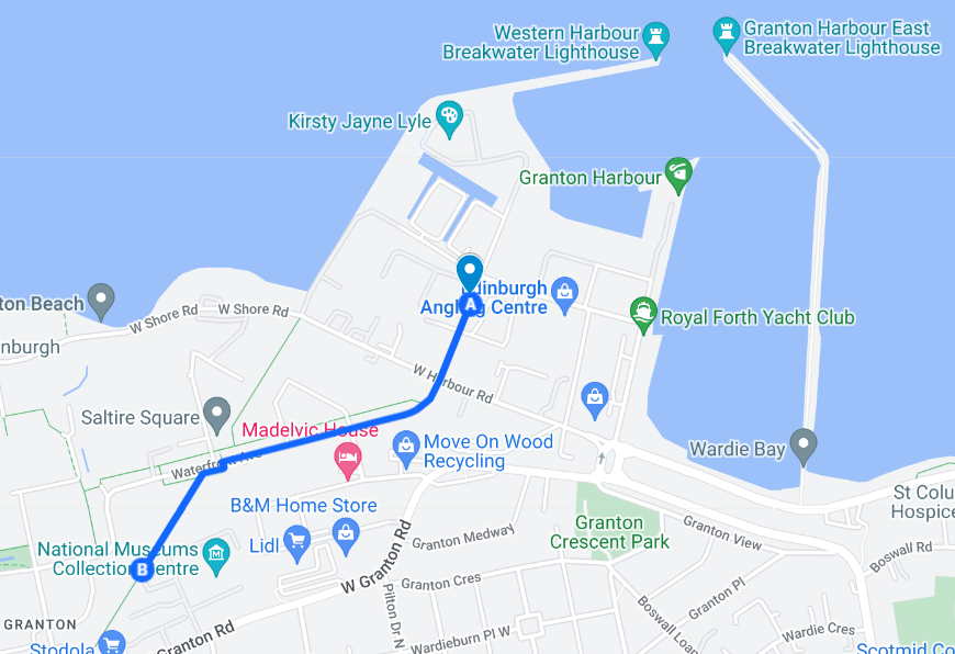At Chestnut Street, Granton Harbour, Edinburgh, walking to Waterfront Avenue. (The exact meeting place was What 3 Words: ///talent.dads.dots and co-ordinates: 55.983248,-3.229066) and around the world.